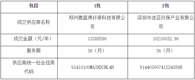 湖北省監(jiān)利縣城區(qū)環(huán)衛(wèi)作業(yè)市場化項(xiàng)目發(fā)布評標(biāo)結(jié)果公示,鄭州傲藍(lán)得環(huán)??萍加邢薰精@得1包,中標(biāo)金額1339萬/年,服務(wù)期限36個(gè)月。 具體中標(biāo)信息如下: 附項(xiàng)目信息: 服務(wù)內(nèi)容:監(jiān)利城區(qū)清掃保潔、生活垃圾收集運(yùn)輸、公廁保潔維護(hù)、水域保潔、中轉(zhuǎn)站管理、牛皮癬清理。 第1包: (1)項(xiàng)目包編號:1包 (2...