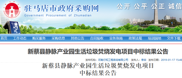 河南省新蔡縣靜脈產(chǎn)業(yè)園生活垃圾焚燒發(fā)電項(xiàng)目發(fā)布中標(biāo)結(jié)果公告,中國光大國際有限公司成為第一中標(biāo)候選人,垃圾處理補(bǔ)助單價(jià)58元/t。 中標(biāo)候選人結(jié)果具體如下: 第一中標(biāo)候選人:中國光大國際有限公司 中標(biāo)價(jià):垃圾處理補(bǔ)助單價(jià)58元/t 第二中標(biāo)候選人:江蘇大吉環(huán)保能源大豐有限公司 中標(biāo)金額:垃圾處理補(bǔ)助單...