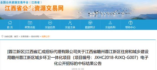 江西省贛州蓉江新區(qū)城鄉(xiāng)環(huán)衛(wèi)一體化項目發(fā)布中標結果公告,龍馬環(huán)衛(wèi)和中聯(lián)環(huán)境分獲一、二標段。其中,一標段中標金額達1.08億,二標段中標金額達1.15億,項目總金額達2.23億。 12月6日,該項目發(fā)布招標公告,根據公告顯示,項目的招標內容如下: 原標題:江西贛州城鄉(xiāng)環(huán)衛(wèi)一體化項目結果發(fā)布,龍馬、中聯(lián)分...