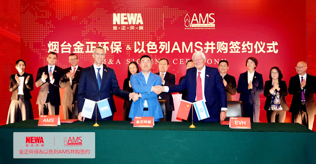 2018年11月28日,煙臺(tái)金正環(huán)保科技有限公司并購以色列AMS公司簽約儀式在煙臺(tái)東方海天酒店隆重舉行。這是金正環(huán)保于2017年在美國納斯達(dá)克主板上市后拓展全球市場布局的堅(jiān)實(shí)一步。