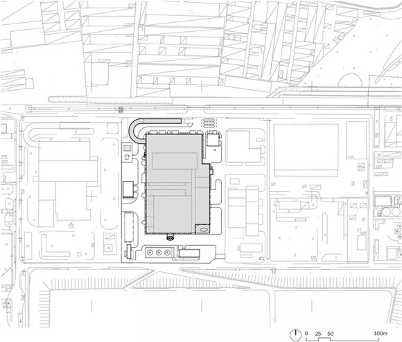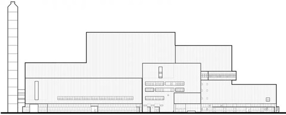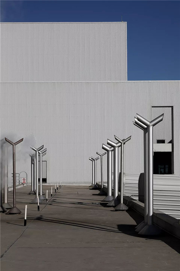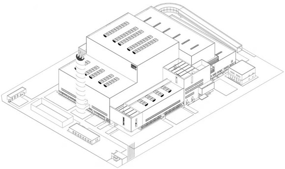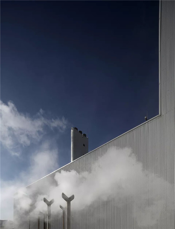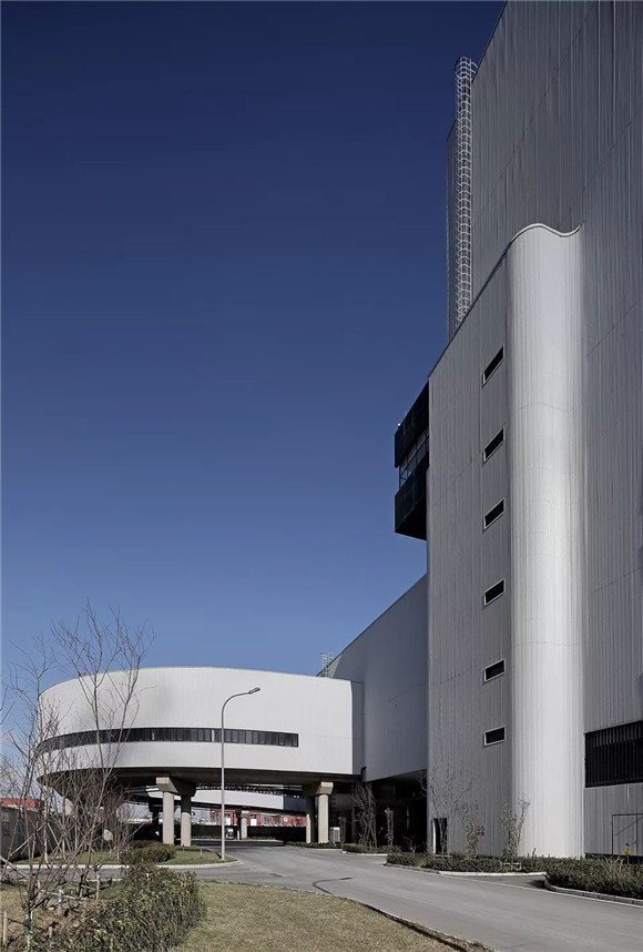 垃圾是人類城市生活的必然產(chǎn)物,垃圾處理中心也成為城市重要的市政公用設(shè)施。焚燒中心主廠房是廠區(qū)內(nèi)體量及高度最大的建筑單體和核心建筑,通過對內(nèi)部工藝和外部圍護(hù)系統(tǒng)的整合設(shè)計,建筑體量滿足設(shè)備工藝對空間的要求,使建筑作為一個整體,將垃圾運(yùn)卸、存放、焚燒、凈化、發(fā)電的工藝流程及空間特征表達(dá)出來,并在保證工藝要求和使用功能的前提下,強(qiáng)調(diào)建筑體量的完整性和工業(yè)建筑的力量感、尺度感,選用能夠反映工業(yè)建筑特征的立面建材,形成簡潔、樸素、高效、不過分夸張喧鬧的外觀,展示其獨(dú)有的建筑形象,在“方整”的基本形態(tài)基礎(chǔ)上,在建筑轉(zhuǎn)角、主要出入口、屋頂?shù)任恢眠M(jìn)行了體量的細(xì)化處理。