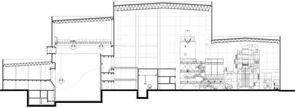 焚燒中心還具有展示、教育的社會服務(wù)功能,在廠房內(nèi)部空間設(shè)置了一條生動、安全、清潔、全面的教育展示通廊和一條垃圾處理參觀廊道,參觀和展示區(qū)域與內(nèi)部生產(chǎn)區(qū)域流線分開,互不干擾,并重點(diǎn)處理了辦公、參觀、展示和教育空間的立面表達(dá)。