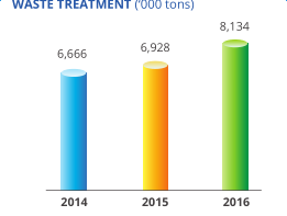 截止2016年12月底,公司已在中國的12個省、自治區(qū)額直轄市已運行了19家垃圾焚燒發(fā)電廠,運營日處理垃圾能力總計27430噸,裝機(jī)容量達(dá)469MW。2016年垃圾處理量增加17.4%達(dá)到813噸,實現(xiàn)了2016年稅前利潤和稅后利潤分別達(dá)到29.0%和32.3%的高增長,2016年實現(xiàn)歸屬股東的凈利潤為5.98億元,同比增長34.7%。