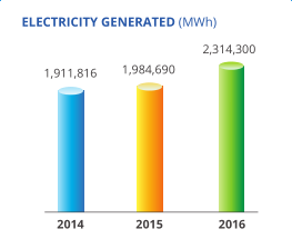 2016年錦江環(huán)境實現(xiàn)發(fā)電量增加16.6%,達(dá)到23.143億千瓦時,上網(wǎng)電量增加15.1%至17.097億千瓦時,供汽量增加35.7%至199萬噸。