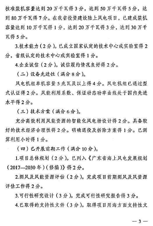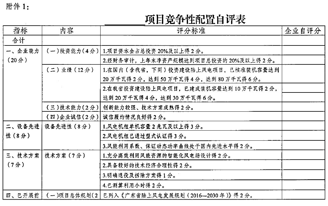 近日,廣東省能源局正式印發(fā)《海上風(fēng)電及陸上風(fēng)電競爭配置辦法(試行)》,該辦法為全國首份風(fēng)電“競價”細(xì)則標(biāo)準(zhǔn),對其他省份競價方案的落地起到了一定的借鑒和引導(dǎo)作用,辦法明確以企業(yè)能力、設(shè)備先進(jìn)性、技術(shù)方案、已開展前期工作、接入消納條件、申報電價七大要素為標(biāo)準(zhǔn)進(jìn)行“競價”。