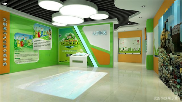 第二展區(qū)通過圖文、視頻及智能設(shè)備,為人們展示生活垃圾的種類和來源。在“三化四分”創(chuàng)新模式展廳,智力闖關(guān)、kinect垃圾分類互動(dòng),以及多媒體模擬等體驗(yàn)項(xiàng)目,將垃圾分類知識(shí)與現(xiàn)代科技融于同一空間,使參觀者獲得對(duì)垃圾分類的直觀感受和切身體驗(yàn)。以嘉興市垃圾處理模式為基礎(chǔ),該展廳還依據(jù)減量化、無害化、資源化原則,從分類投放、分類收集、分類運(yùn)輸、分類處置4個(gè)步驟,展現(xiàn)垃圾分類處理過程,充分發(fā)揮展品的展教功能。