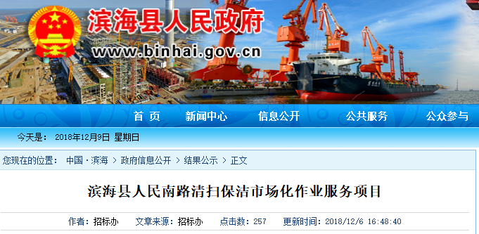 金沙田中標42.8萬江蘇濱海縣清掃保潔項目