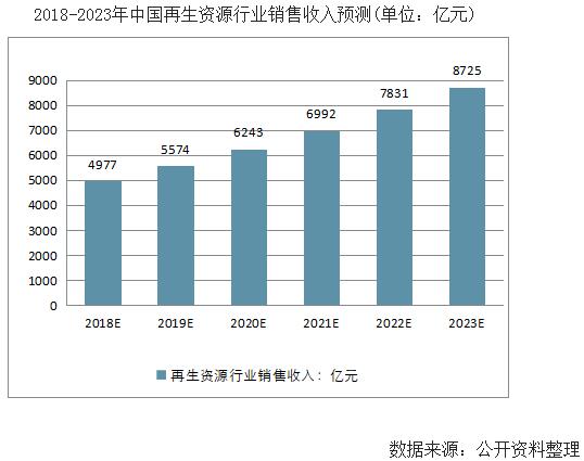 2016年我國(guó)再生資源行業(yè)實(shí)現(xiàn)銷售收入3967.3億元,同比增長(zhǎng)7.05%。根據(jù)當(dāng)前國(guó)內(nèi)外經(jīng)濟(jì)形勢(shì)以及2016年的銷售收入基數(shù),結(jié)合2011-2016年中國(guó)再生資源行業(yè)銷售收入數(shù)據(jù)及中國(guó)經(jīng)濟(jì)增長(zhǎng)數(shù)據(jù),預(yù)計(jì)到2023年我國(guó)再生資源行業(yè)銷售收入將超過8700億元,增長(zhǎng)幅度將在12%左右的水平。