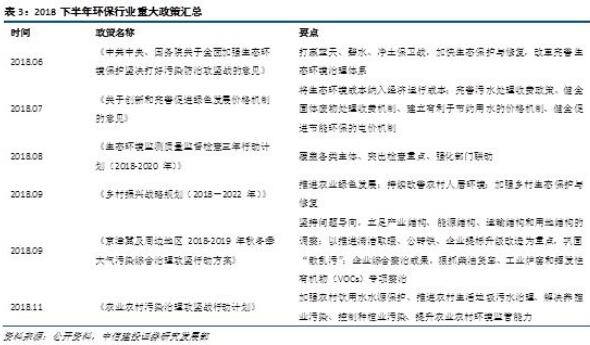 環(huán)保政策支持力度大,行業(yè)轉(zhuǎn)折現(xiàn)生機(jī)。18 年下半年以來,政府不僅出臺(tái)了打贏藍(lán)天保衛(wèi)戰(zhàn)等七大環(huán)保攻堅(jiān)戰(zhàn)的政策,還相繼出臺(tái)包括鄉(xiāng)村振興戰(zhàn)略規(guī)劃、創(chuàng)新和完善促進(jìn)綠色發(fā)展價(jià)格機(jī)制在內(nèi)的一系列政策文件。這些政策的出臺(tái)與環(huán)保行業(yè)息息相關(guān),對未來政策規(guī)劃、實(shí)現(xiàn)方法、監(jiān)督舉措等都進(jìn)行了詳細(xì)且深刻的解釋說明,尤其在環(huán)保行業(yè)運(yùn)營資產(chǎn)價(jià)格形成機(jī)制、政府承諾兌現(xiàn)力度等方面,更是提出了有效建議,從而推動(dòng)環(huán)保行業(yè)的發(fā)展。