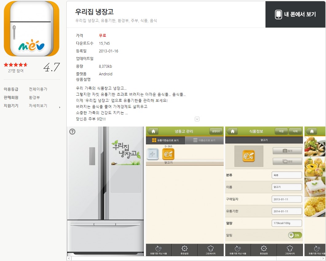 韓國環(huán)境部推出的手機應(yīng)用“我們家的冰箱”