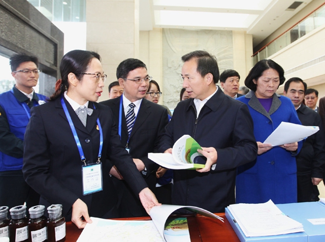 會(huì)前,李干杰還看望了廣西壯族自治區(qū)基層污染源普查和土壤詳查的工作人員代表,參觀了自治區(qū)普查和詳查工作初步成果展,并聽(tīng)取了廣西污染源普查和土壤詳查工作情況匯報(bào)。