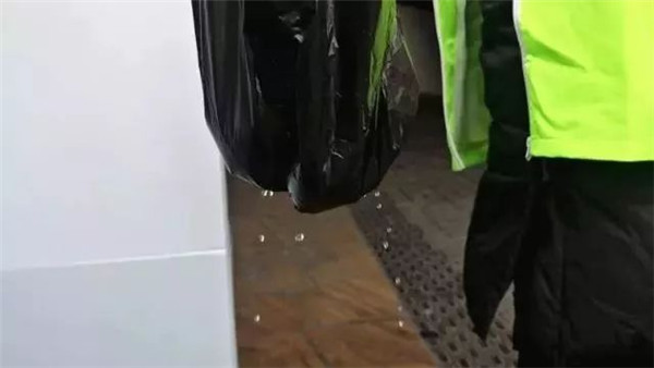 由于干垃圾袋底部有瀝水孔,如果居民將濕垃圾裝進了干垃圾袋,底部就可能漏液,如此一來,就提醒居民不能混裝垃圾。