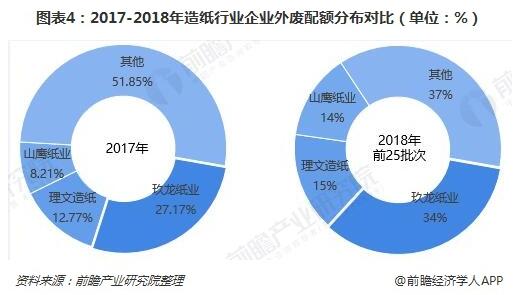 而從外廢配額的企業(yè)分布來看,有向龍頭企業(yè)集中的趨勢(shì)。2018年前25批次外廢配額中玖龍紙業(yè)、理文造紙、山鷹紙業(yè)三家廢紙系龍頭獲得配額占比達(dá)63%,較2017年的48%有明顯提升。長期來看,外廢進(jìn)口清零大勢(shì)所趨,各企業(yè)也通過尋求替代原料的方式來解決這一問題。而龍頭企業(yè)依靠資金優(yōu)勢(shì)和前瞻性的布局,在原料端布局深厚,并且通過海外產(chǎn)能建設(shè)來獲得原料供應(yīng),具備比較優(yōu)勢(shì)。