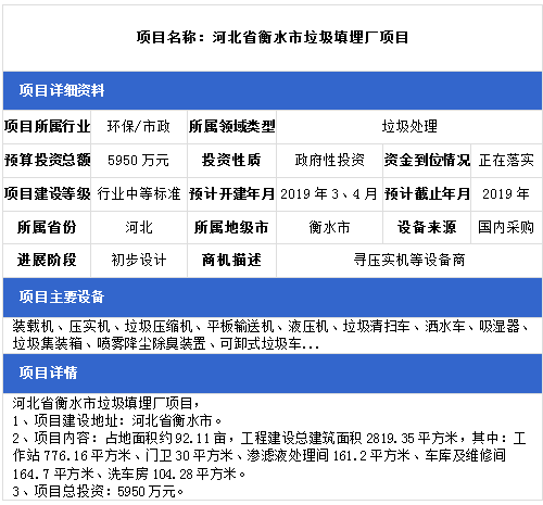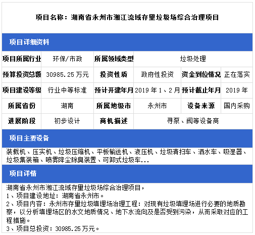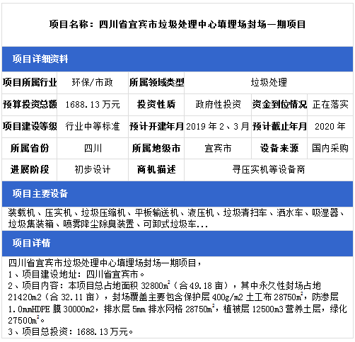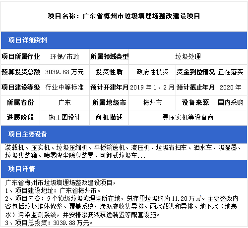 中項(xiàng)網(wǎng)獨(dú)家授權(quán)北極星固廢網(wǎng)發(fā)布最新垃圾處理項(xiàng)目(2018年12月18日更新),其中包括生活垃圾無害化處理設(shè)置建設(shè)項(xiàng)目、農(nóng)村生活垃圾治理項(xiàng)目、生活垃圾衛(wèi)生填埋場(chǎng)項(xiàng)目等。具體內(nèi)容如下: