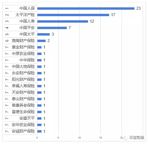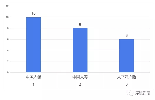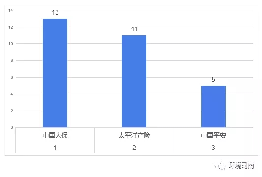 從中標(biāo)項(xiàng)目總量來(lái)看,中國(guó)人保、太平洋保險(xiǎn)、中國(guó)人壽位居環(huán)衛(wèi)保險(xiǎn)領(lǐng)域前三甲,這三家保險(xiǎn)公司的中標(biāo)項(xiàng)目數(shù)量均超過(guò)10個(gè)。
