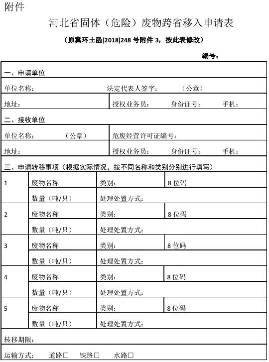 附件:河北省固體(危險)廢物跨省移入申請表