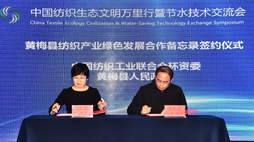 隨后,中國紡織工業(yè)聯(lián)合會環(huán)資委與黃梅縣人民政府簽定了“黃梅縣紡織產(chǎn)業(yè)綠色發(fā)展合作備忘錄”。 雙方一致表示,要在未來兩年深入挖掘黃梅縣域內(nèi)紡織產(chǎn)業(yè)生態(tài)、綠色元素,引導(dǎo)更多利益相關(guān)方共同參與園區(qū)建設(shè)和產(chǎn)業(yè)升級,推進(jìn)園區(qū)綠色化、高質(zhì)量發(fā)展,實現(xiàn)區(qū)域和行業(yè)綠色化發(fā)展的雙向突破。