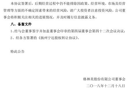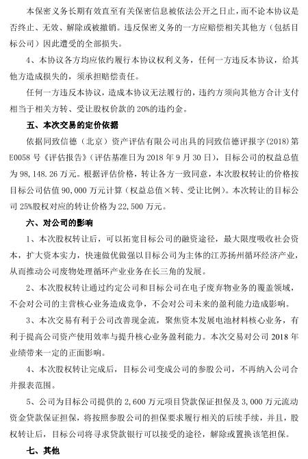 12月18日,格林美發(fā)布公告,公司將持有揚(yáng)州寧達(dá)貴金屬有限公司60%股權(quán)中的合計(jì)25%股權(quán)分別轉(zhuǎn)讓給揚(yáng)州市江都區(qū)政府投資平臺(tái)公司揚(yáng)州市龍川產(chǎn)業(yè)投資發(fā)展有限公司、揚(yáng)州創(chuàng)美企業(yè)管理合伙企業(yè)(有限合伙)。轉(zhuǎn)讓后公司持有目標(biāo)公司35%股權(quán)。