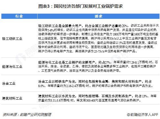 工業(yè)鍋爐在我國生產(chǎn)生活中占據(jù)重要地位。目前,在我國工業(yè)生產(chǎn)中,輕紡和化學(xué)工業(yè)是大量用熱的部門。而未來輕紡工業(yè)、能源工業(yè)、建材、建筑業(yè)、化學(xué)工業(yè)、冶金工業(yè)、交通運輸業(yè)和軍工部門等仍將是工業(yè)鍋爐的主要市場。