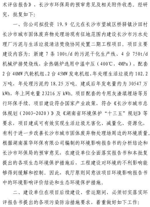 日前,湖南生態(tài)環(huán)境廳批復(fù)了長(zhǎng)沙市污水處理廠污泥與生活垃圾清潔焚燒協(xié)同處置二期工程項(xiàng)目環(huán)境影響報(bào)告書。