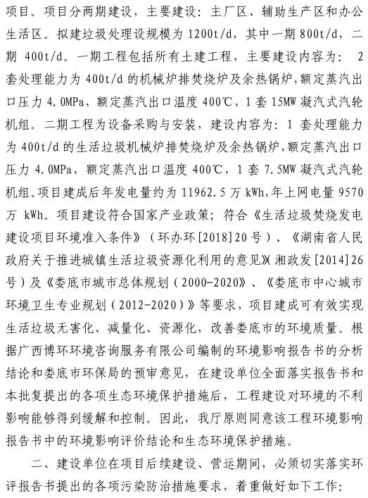 日前,湖南生態(tài)環(huán)境廳批復(fù)了婁底市城市生活垃圾焚燒發(fā)電項(xiàng)目環(huán)境影響報(bào)告書。