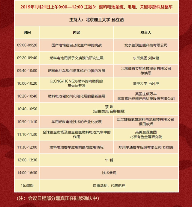 2019全國(guó)氫燃料電池汽車(chē)產(chǎn)業(yè)技術(shù)峰會(huì)將于2019年 1 月20日至21日在北京召開(kāi)。本次峰會(huì)由中國(guó)電池聯(lián)盟、中國(guó)電子節(jié)能技術(shù)協(xié)會(huì)電池專委會(huì)、中國(guó)高科技產(chǎn)業(yè)化研究會(huì)、清華大學(xué)、北京理工大學(xué)聯(lián)合舉辦。距離會(huì)議開(kāi)幕倒計(jì)時(shí)還有30天,主辦方限量開(kāi)放200個(gè)免費(fèi)參會(huì)名額,僅限業(yè)內(nèi)人士領(lǐng)取,數(shù)量有限,請(qǐng)抓緊時(shí)間。