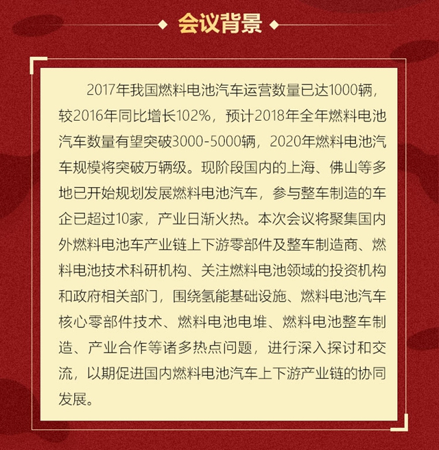 本次大會(huì)將聚集國(guó)內(nèi)外燃料電池車(chē)產(chǎn)業(yè)鏈上下游零部件及整車(chē)制造商、燃料電池技術(shù)科研機(jī)構(gòu)、關(guān)注燃料電池領(lǐng)域的投資機(jī)構(gòu)和政府相關(guān)部門(mén),圍繞氫能基礎(chǔ)設(shè)施、燃料電池汽車(chē)核心零部件技術(shù)、燃料電池電堆、燃料電池整車(chē)制造、產(chǎn)業(yè)合作等諸多熱點(diǎn)問(wèn)題,進(jìn)行深入探討和交流。