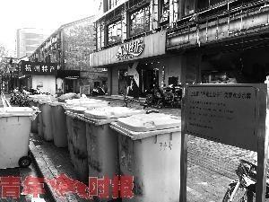 上城區(qū)市容環(huán)衛(wèi)亮燈監(jiān)管科工作人員徐瑋棟說,上城區(qū)不少道路都是杭州的主城區(qū)主干道,路雖不寬,可由于離景區(qū)近,都是重點關注路段。為了消除垃圾桶亂放帶來的環(huán)境等問題,他們推出了好幾個像東坡路66號集置點這樣的地方,由于這是上城區(qū)第一個集置點,所以當初還設立了牌子,其他地方則不一定設牌了,“集置點主要集中在沿街商鋪、餐飲店集中的地區(qū)。平時,垃圾桶就在店家,到了清運時間點拖出來。清運過后,店家再將垃圾桶拖回店內(nèi)。”