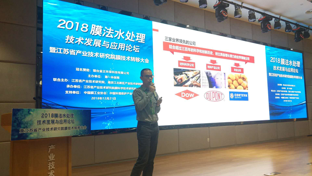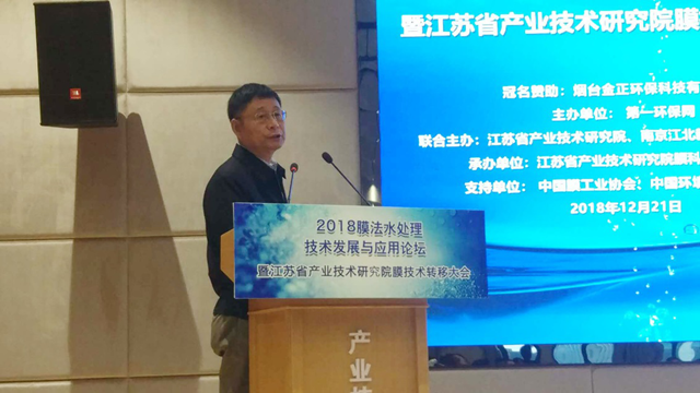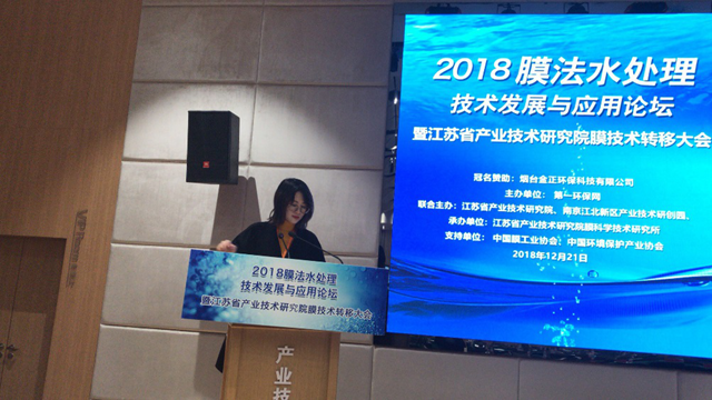 2018年12月21日,由第一環(huán)保網主辦,江蘇省產業(yè)研究院、南京江北新區(qū)產業(yè)技術研究園聯(lián)合主辦,江蘇省產業(yè)技術研究院膜科學技術研究所承辦,中國膜工業(yè)協(xié)會、中國環(huán)境保護產業(yè)協(xié)會共同支持,煙臺金正環(huán)??萍加邢薰惊毤屹澲?ldquo;2018膜法水處理技術發(fā)展與應用論壇暨江蘇省產業(yè)技術研究院膜技術轉移大會”在江蘇省南京市江北新區(qū)產業(yè)技術研創(chuàng)園騰飛大廈盛大召開。