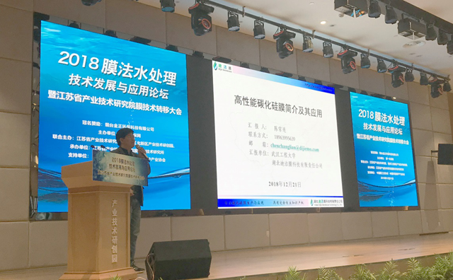 湖北迪潔膜科技有限責任公司的技術總監(jiān)陳常連同樣帶來了精彩的演講,重點介紹了公司在碳化硅陶瓷膜領域的突出創(chuàng)新與技術發(fā)展,詳細介紹了碳化硅結構、燒成工藝及性能特點,以經典的案例入手,充分論證了碳化硅陶瓷膜的分離優(yōu)勢,以及在含油廢水處理、酸性介質處理等方面應用的廣闊前景與意義。