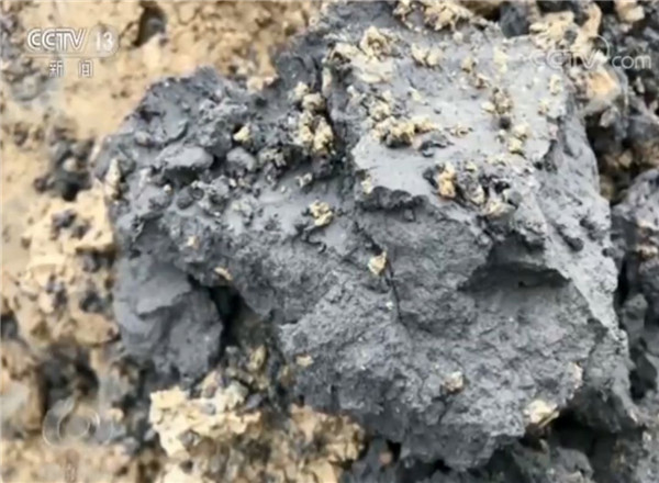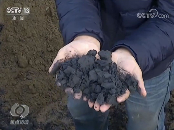有關(guān)部門決定讓友聯(lián)化工和項目承包方將這些單氰胺廢渣和生活垃圾拉走。但是村民們稱這些化工垃圾并沒有全部拉走。記者找來了一臺挖掘機想一探究竟。挖掘機一開始挖,就發(fā)現(xiàn)了帶著強烈氨氣氣味的黑色物質(zhì)。