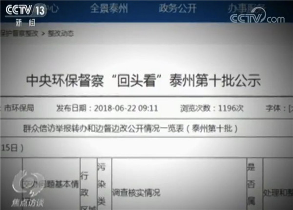 等了兩天不見回信,王先生和6位村民一起將此事舉報到泰興市環(huán)保局的上級單位泰州市環(huán)保局。2017年12月8日,泰州市環(huán)保局對此進行調(diào)查,泰州市電視臺對此事作了跟進報道。