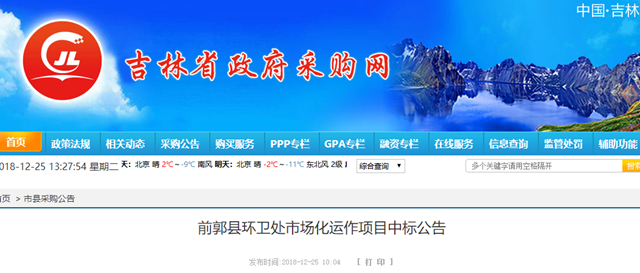 中聯(lián)環(huán)境中標(biāo)2.82億吉林省前郭縣環(huán)衛(wèi)市場(chǎng)化項(xiàng)目