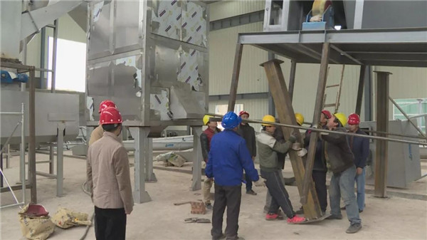 在豐都縣規(guī)?;锬茉垂こ探ㄔO(shè)現(xiàn)場(chǎng),工程土建已全部完成,工人們正在餐廚車間安裝機(jī)器設(shè)備,而工程厭氧發(fā)酵系統(tǒng)、有機(jī)肥生產(chǎn)等設(shè)備安裝已經(jīng)完成。