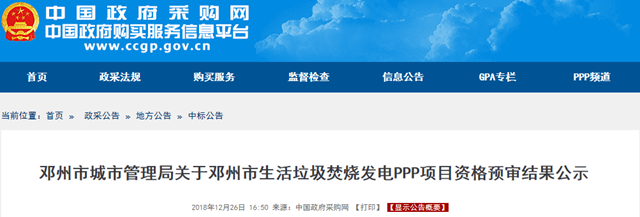 河南鄧州垃圾焚燒PPP項(xiàng)目資審結(jié)果公示 三企入圍