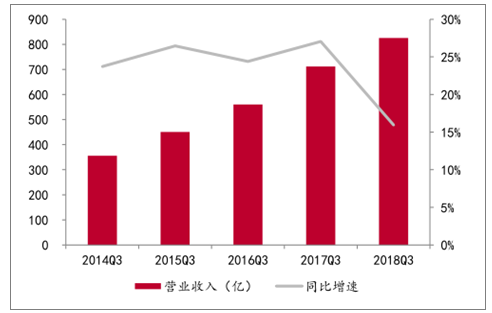 調(diào)整后環(huán)保板塊2014Q3-2018Q3營(yíng)業(yè)收入