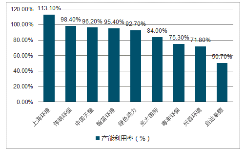 垃圾焚燒上市公司產(chǎn)能利用率比較圖