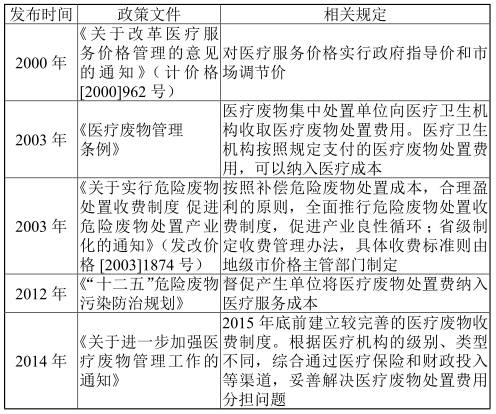 表1 醫(yī)療廢物處置收費政策文件