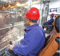 驅(qū)車沿黑麋峰蜿蜒的山路行駛,一路逶迤起伏,蒼翠欲滴。幾經(jīng)曲折面前豁然開朗,腳下,青草、野花、樹木,彌漫著暗香浮動(dòng)的清新空氣;不遠(yuǎn)處,冷卻塔、煙囪、垃圾儲(chǔ)坑、焚燒發(fā)電廠房等涂裝不同顏色的建筑鱗次櫛比。無(wú)法想象,這竟是垃圾焚燒發(fā)電廠!沿著一號(hào)廠房的參觀通道,每走一段就有不同顏色的燈帶,預(yù)示著進(jìn)入了不同的處理車間。透過清潔焚燒中心垃圾吊控制室的玻璃幕墻,一個(gè)巨大的抓斗從垃圾池內(nèi)緩慢地將垃圾抓起,把它們從燃燒到千度高溫的焚燒爐頂端投進(jìn)去,焚燒爐內(nèi)的高溫迅速將垃圾烤干焚燒。“有了垃圾焚燒發(fā)電,長(zhǎng)沙的生活垃圾最終會(huì)告別填埋!”浦湘公司副總經(jīng)理段佳指著正在大口大口“吞食”垃圾的現(xiàn)代化焚燒設(shè)備,臉上洋溢著自豪的微笑。