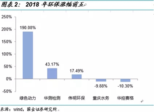 2018年A股中的環(huán)保股,漲幅前五的分別是綠色動(dòng)力(+190.08%,新股)、華測(cè)檢測(cè)(+43.17%)、偉明環(huán)保(+17.49%)、重慶水務(wù)(-9.88%)和華控賽格(-10.30%);跌幅前五的分別是神霧環(huán)保(-83.69%)、興源環(huán)境(-78.78%)、神霧節(jié)能(-78.63%)、盛運(yùn)環(huán)保(-74.89%)和清新環(huán)境(-65.92%)。