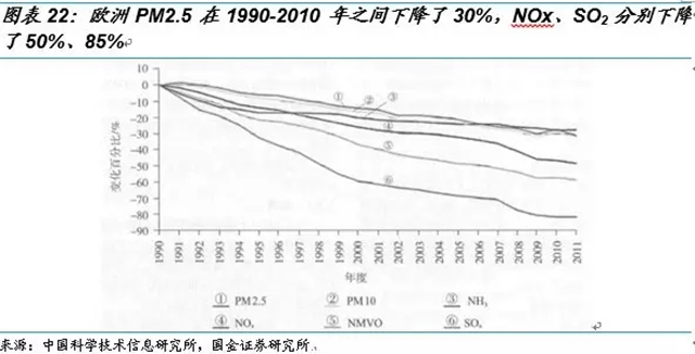 我們對(duì)比歐洲幾十年的治理之路,1952年倫敦?zé)熿F事件后開(kāi)始大氣治理。1975年倫敦的霧霾天氣由每年幾十天減少到了15天,1980 年降到5天。整個(gè)歐洲的PM2.5的排放量從1990年到2010年的20年間下降了30%。《打贏藍(lán)天保衛(wèi)戰(zhàn)三年行動(dòng)計(jì)劃》要求5年間PM2.5未達(dá)標(biāo)地級(jí)及以上城市濃度比2015年下降18%以上,即使我國(guó)有集中力量辦大事的優(yōu)勢(shì),但空氣改善任務(wù)依然艱巨,時(shí)間緊任務(wù)重。