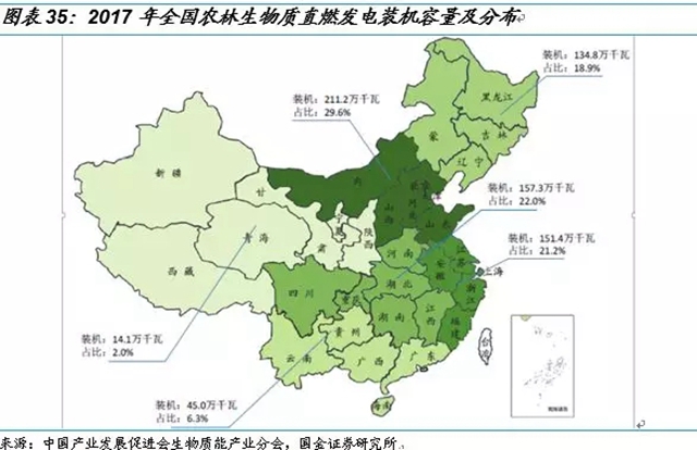 2017年底,我國(guó)垃圾焚燒累計(jì)并網(wǎng)發(fā)電裝機(jī)容量達(dá)到725.1萬(wàn)千瓦,約占全國(guó)生物質(zhì)并網(wǎng)發(fā)電總裝機(jī)容量的49%。隨著我國(guó)城鎮(zhèn)化建設(shè)進(jìn)一步深入,垃圾焚燒發(fā)電項(xiàng)目開(kāi)發(fā)建設(shè)重點(diǎn)已經(jīng)逐步由大中型城市向新興城鎮(zhèn)轉(zhuǎn)移,“十三五”期間的垃圾焚燒發(fā)電將是生物質(zhì)發(fā)電產(chǎn)業(yè)中的主要增長(zhǎng)點(diǎn)。我國(guó)的垃圾焚燒發(fā)電項(xiàng)目主要集中在華東和華北地區(qū),尤以經(jīng)濟(jì)相對(duì)發(fā)達(dá)的華東地區(qū)的發(fā)展規(guī)模最大,在全國(guó)垃圾焚燒發(fā)電裝機(jī)容量中的占比接近一半。目前,垃圾焚燒發(fā)電累計(jì)裝機(jī)容量占全國(guó)比例最高的四個(gè)地區(qū)分別為:江蘇、廣東、浙江和山東,垃圾焚燒發(fā)電項(xiàng)目的建設(shè)與地區(qū)經(jīng)濟(jì)的發(fā)展密切相關(guān)。