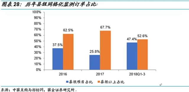 網(wǎng)格化監(jiān)測(cè)系統(tǒng)有望成為城市空氣治理之標(biāo)配。在國(guó)家生態(tài)環(huán)境部開(kāi)展城市空氣質(zhì)量排名的考核排名壓力下,部分省市開(kāi)始將空氣質(zhì)量考核排名下沉到對(duì)鄉(xiāng)鎮(zhèn)空氣質(zhì)量考核,進(jìn)而開(kāi)始建設(shè)鄉(xiāng)鎮(zhèn)站空氣監(jiān)測(cè)項(xiàng)目,2018年上半年公司陸續(xù)中標(biāo)河南鶴壁,山東菏澤,河北保定、唐山及張家口等地鄉(xiāng)鎮(zhèn)站空氣監(jiān)測(cè)建設(shè)項(xiàng)目。我們認(rèn)為隨著城市空氣質(zhì)量排名從地級(jí)市下沉到縣級(jí)市,并且環(huán)保督察的持續(xù)高壓,網(wǎng)格化監(jiān)測(cè)有望成為城市空氣治理的標(biāo)配。