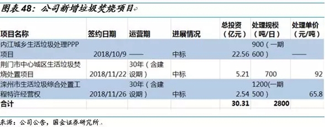 接連中大單,項(xiàng)目拓展速度加速:10月以來(lái),公司接連中標(biāo)大單。城市環(huán)境業(yè)務(wù)板塊接連中標(biāo)內(nèi)江城鄉(xiāng)生活垃圾處理PPP項(xiàng)目、荊門(mén)市中心城區(qū)生活垃圾焚燒處置項(xiàng)目和灤州市生活垃圾綜合處置工程。公司新增垃圾焚燒產(chǎn)能2800噸/日,總產(chǎn)能達(dá)到9400噸/日,產(chǎn)能規(guī)模提升了42%。泗洪縣垃圾焚燒發(fā)電項(xiàng)目(一期)已經(jīng)試運(yùn)營(yíng),成為公司第一個(gè)運(yùn)營(yíng)的生活垃圾焚燒發(fā)電項(xiàng)目。環(huán)境修復(fù)業(yè)務(wù)板塊新增3個(gè)項(xiàng)目:蘇州溶劑廠原址南區(qū)項(xiàng)目、杭州市望江地區(qū)紅星化工廠土壤修復(fù)項(xiàng)目和常豐農(nóng)化原廠址場(chǎng)地修復(fù)項(xiàng)目,合同金額約5.68億元。工業(yè)環(huán)境板塊新增西藏玉龍銅礦改擴(kuò)建工程諾瑪弄溝尾礦庫(kù)工程,合同金額為10.53億,公司負(fù)責(zé)其中防滲工程部分(金額約占25%)。