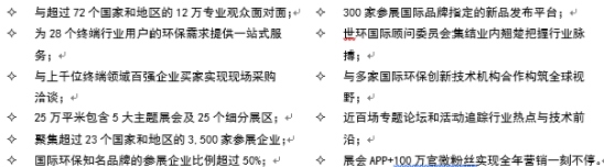 世環(huán)會作為秉承工匠精神的環(huán)保博覽會平臺承數(shù)十載國際化、專業(yè)化的海外展會優(yōu)質(zhì)背景,整合了五大國際性展會,AQUATECH CHINA上海國際水展、FLOWTECH CHINA上海國際泵管閥展、BUILDEX CHINA上海國際建筑水展、ECOTECH CHINA上海國際固.廢氣展、ECOTECH CHINA上海國際空氣新風(fēng)展,已發(fā)展成為全球環(huán)保產(chǎn)業(yè)鏈一站式平臺,同時精準(zhǔn)聚焦24大細(xì)分主題展示區(qū),涵蓋環(huán)保全業(yè)態(tài)垂直版塊。