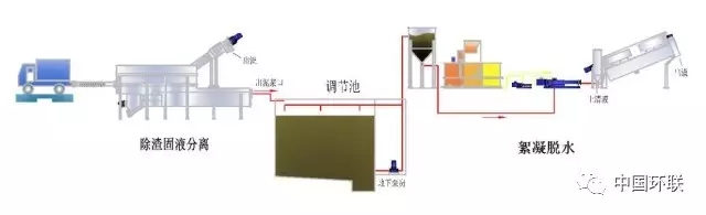 糞便處理采用固液分離,絮凝脫水、整體除臭工藝。經(jīng)固液分離后產(chǎn)出的垃圾和雜物密封打包后送垃圾填埋場(chǎng)或焚燒處理;糞便過(guò)濾液進(jìn)入調(diào)節(jié)池后均勻的供給絮凝脫水設(shè)備,通過(guò)絮凝脫水設(shè)備將糞渣糞水分離;脫水后的糞渣進(jìn)行好氧堆肥,液體進(jìn)入上清液處理生產(chǎn)線。