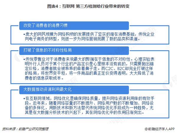 踏著互聯(lián)網(wǎng)發(fā)展的春風(fēng),我國第三方檢測機(jī)構(gòu)也開始互聯(lián)網(wǎng)化轉(zhuǎn)型之路,積極利用大數(shù)據(jù)推動資源利用的最大化,擴(kuò)大消費者對于第三方檢測行業(yè)的認(rèn)知,從而擴(kuò)大下游需求的增長。