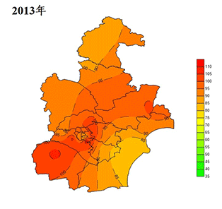 6項(xiàng)主要污染物中,PM2.5等5項(xiàng)均明顯改善;可吸入顆粒物(PM10)、二氧化硫(SO2)、二氧化氮(NO2)和一氧化碳(CO)年均濃度分別為82微克/立方米、12微克/立方米、47微克/立方米和1.9毫克/立方米,較2017年下降幅度分別為12.8%、25.0%、6.0%和32.1%;臭氧(O3)濃度同比上升4.7%。2018年達(dá)標(biāo)天數(shù)207天,達(dá)標(biāo)比例58.1%,同比上升0.2個百分點(diǎn)。