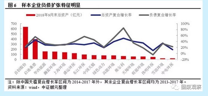 樣本企業(yè)總資產(chǎn)規(guī)模差異較大,負(fù)債帶動資產(chǎn)擴(kuò)張?zhí)卣髅黠@。從2018年9月末資產(chǎn)規(guī)模來看,首創(chuàng)股份居首,啟迪桑德位于第二,均超過350億元,100-200億元的企業(yè)有4家,100億元以下企業(yè)10家。生活垃圾焚燒發(fā)電領(lǐng)域市場空間大,國家支持力度強(qiáng),項(xiàng)目運(yùn)營期經(jīng)濟(jì)效益穩(wěn)定,在PPP政策的推動下,業(yè)內(nèi)企業(yè)積極通過投資、并購占領(lǐng)市場,2013-2017年樣本企業(yè)總資產(chǎn)復(fù)合增速29.83%,16家樣本企業(yè)中有11家負(fù)債年復(fù)合增速超過總資產(chǎn)復(fù)合增速。
