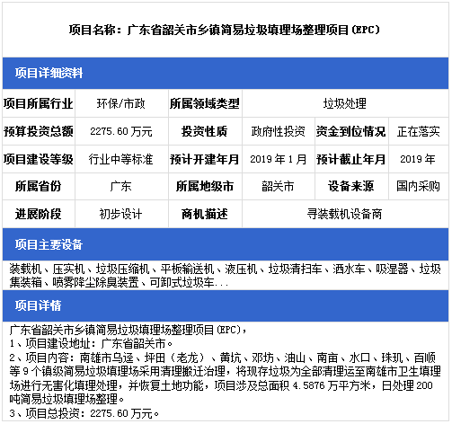 中項(xiàng)網(wǎng)獨(dú)家授權(quán)北極星固廢網(wǎng)發(fā)布最新垃圾處理項(xiàng)目(2019年1月14日更新),其中包括垃圾填埋場(chǎng)項(xiàng)目、餐廚垃圾處理項(xiàng)目、生活垃圾中轉(zhuǎn)站建設(shè)項(xiàng)目等。具體內(nèi)容如下: